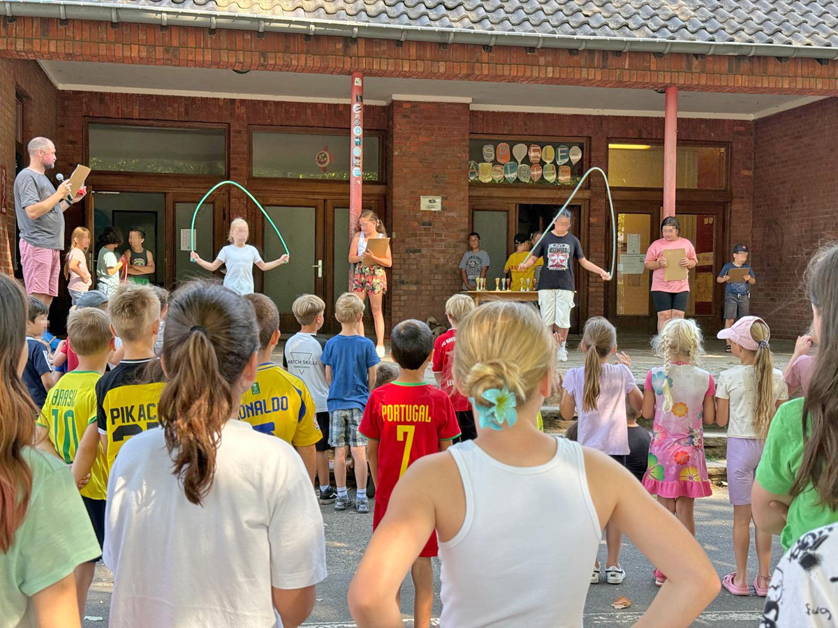 In den vergangenen Wochen war auf dem Schulhof eine Menge los: Zahlreiche Schulkinder nutzten die Hofpausen, um fleißig für den großen Springseil-Wettbewerb zu üben. Mit viel Ehrgeiz trainierten sie in den Pausen, um bestens auf die Herausforderungen der einzelnen Runden vorbereitet zu sein.