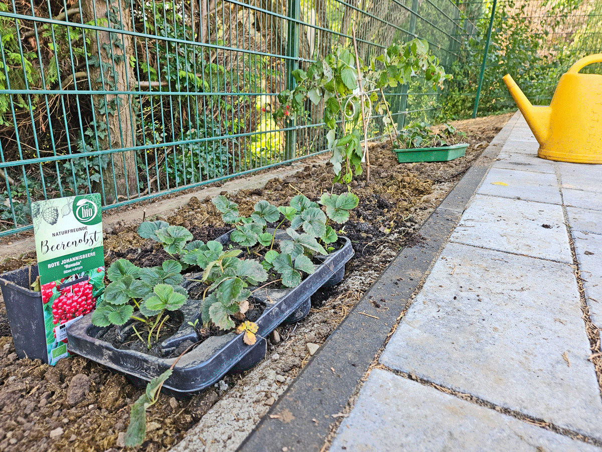 Auch im Schulgarten geht es sichtbar voran: Dank der tatkräftigen Unterstützung aus der Elternschaft und des Fördervereins – allen voran Herrn Hochweg – konnten bereits ein Gartenhaus und weitere Hochbeete entstehen.