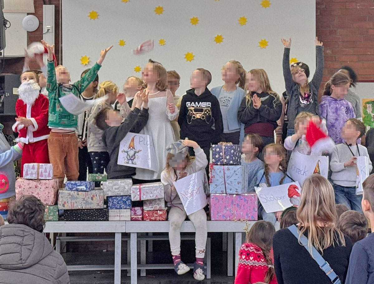 Im Rahmen der traditionellen Weihnachtsfeier verabschiedeten sich die Kinder und das Schul-Team am letzten Schultag in der festlich geschmückten Aula gemeinsam in die Weihnachtsferien.