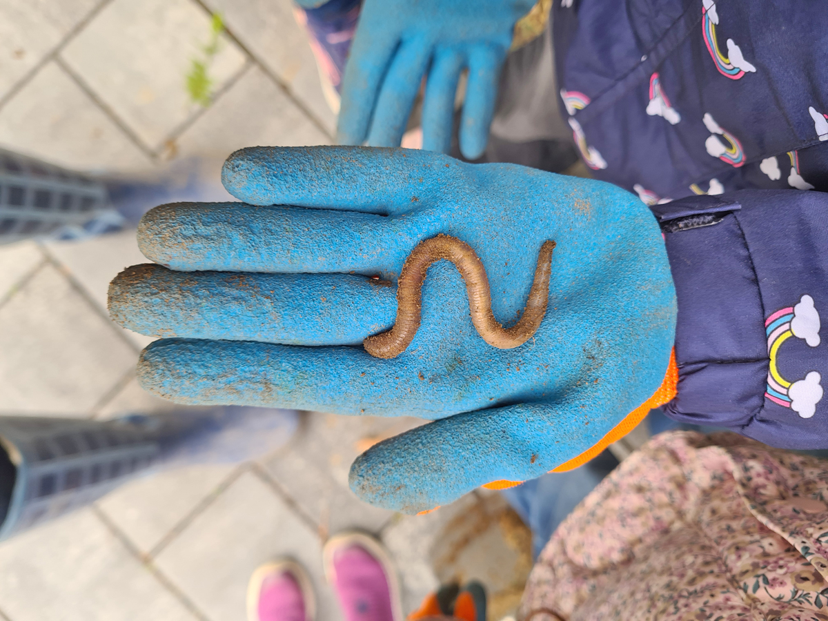 In der vergangenen Woche startete in der OGS eine kleine Arbeitsgemeinschaft unter der Leitung von Frau Wingen. Gemeinsam jäteten sie und bereiteten ein Beet für die Bepflanzung vor. Besonders freuten sich die Kinder über die kleinen Bewohner, die sie dabei entdecken konnten.
