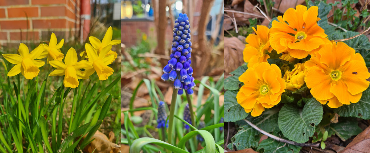 Die Frühblüher, die im Herbst gemeinsam mit den Kindern an verschiedenen Stellen des Schulgeländes gepflanzt wurden, öffnen nun bei den ersten warmen Sonnenstrahlen ihre bunten Blüten.