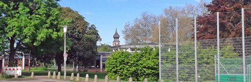 Blick auf den "Dreier-Pavillon". Hier befinden sich drei Klassenräume.